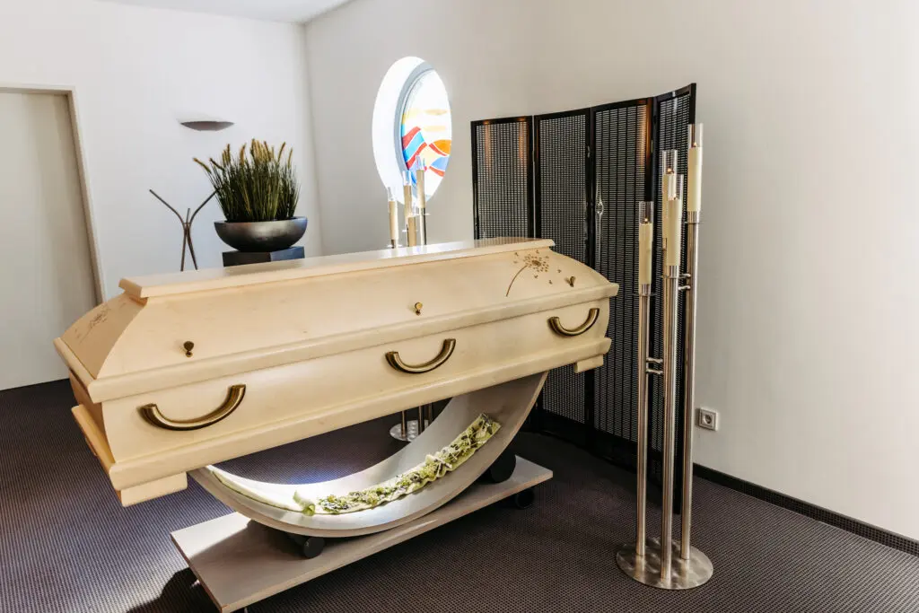 Wir ermöglichen Aufbahrungen am geöffneten oder am geschlossenen Sarg – ganz individuell nach Ihren Vorstellungen. Nehmen Sie sich die Zeit für Ihren Abschied, die Sie benötigen.